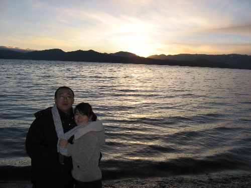 阿鲁和我们说,我们带了礼物来,让他很感动,至少表示了我们对他的祖先是非常的尊重的,摩梭人不在乎礼物的轻重,重要意思尽到就好。到摩梭人的家里一般是送礼物比送钱更受欢迎。摩梭族是现在世界上唯一的母系社会,都是母亲和舅舅把儿女养大,父亲一般是不和他们生活在一起的,不能算做家人,阿鲁在介绍家人的时候就没有提到他的父亲,他们也只管父亲叫舅舅,不过现在我觉得摩梭人还是有些被汉化了,家庭的制度也并不完全是书上说的那么传统了。由于家里都在忙着干活,稍坐片刻,我们便告辞了,阿妈要我们一定留在家里过春节,但是我们往返的机票已经定好了,阿妈有些失望。阿鲁一直把我们送到路口,车启动了,他还在向我们招手。