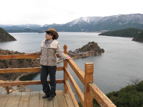 车子绕过了观景台,阿鲁说,他的家乡就要到了,他要代表他家乡的人们,用歌声欢迎我们。我们兴奋极了,在掌声中,阿鲁用他的歌声让我们进一步感受了摩梭人的热情。后来才知道,阿鲁唱的歌叫做《女儿长大成人》,是摩梭族流传最广泛的民歌。委婉动听的民歌、蜿蜒盘旋的山路、若隐若现的蓝色湖面,让我们感觉正在走进这美丽女儿国的深处。