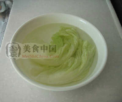 先把白菜整片放入锅中烫软(软了就好,別煮太久唷!)